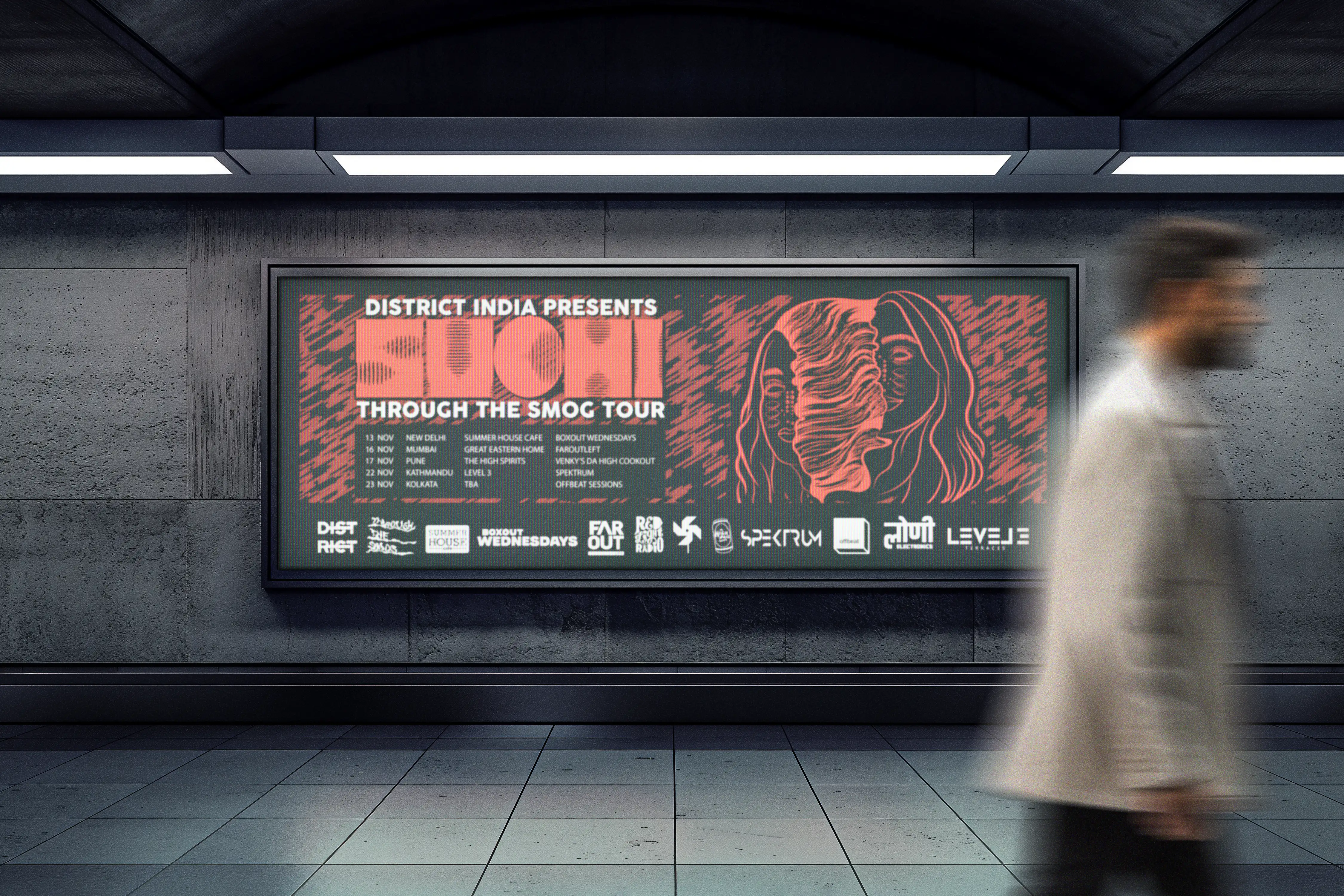 SUCHI, a globally-influenced DJ (Oslo-London-Delhi-NYC), returned to India for the third time with her eclectic blend of house, techno, electro, and acid. The tour was organized by District India.