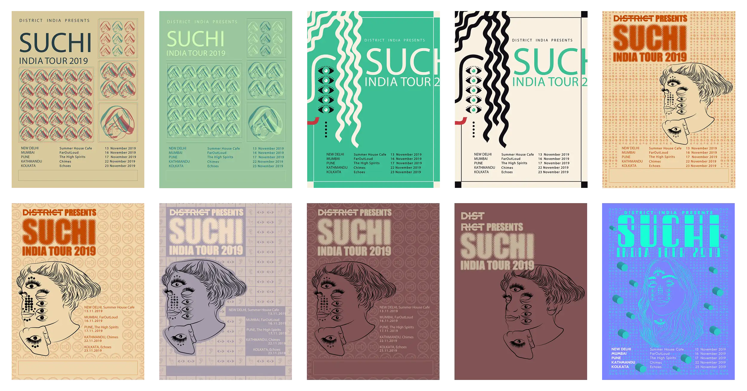 SUCHI wanted a very bold, graphic style combining rough textures and high contrast with minimal colors. The goal was to create a gritty, industrial feel. To achieve this I made a distorted portrait and rhythmic line patterns to evoke motion, noise, and feelings of underground electronic culture - blending techno aesthetics with a raw, poster-print edge.